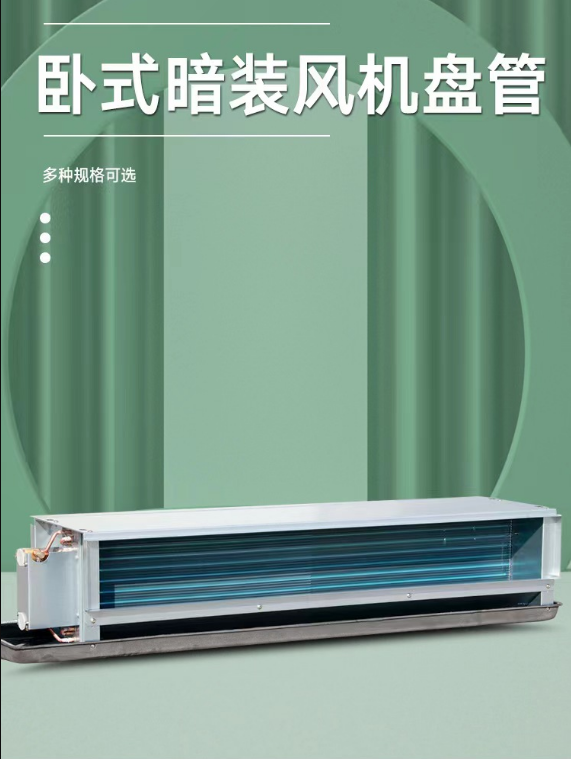 臥式暗裝風機盤管輪廓特別低,可理想地放入天花板內,結合室內裝修,配上出風口 ,是賓館、飯店辦公室等理想的空調設備。