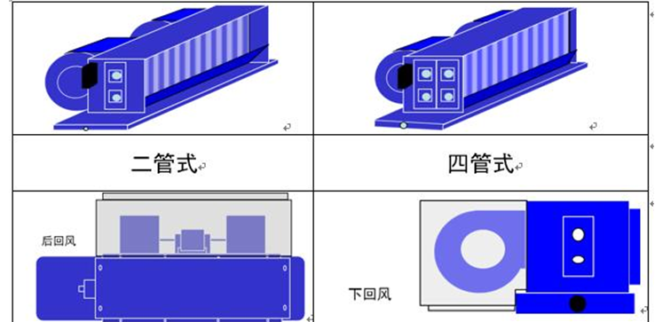 風(fēng)機(jī)盤管機(jī)組的類型和型號(hào):風(fēng)機(jī)盤管機(jī)組按其形式可分為六種:水平安裝、水平開口安裝、垂直隱蔽安裝、垂直開口安裝、夾緊式、一般開口安裝等。