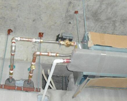 同時(shí),在安裝前與其他專(zhuān)業(yè)協(xié)調(diào),確定連接進(jìn)出水管的標(biāo)高和冷凝水管的坡度。