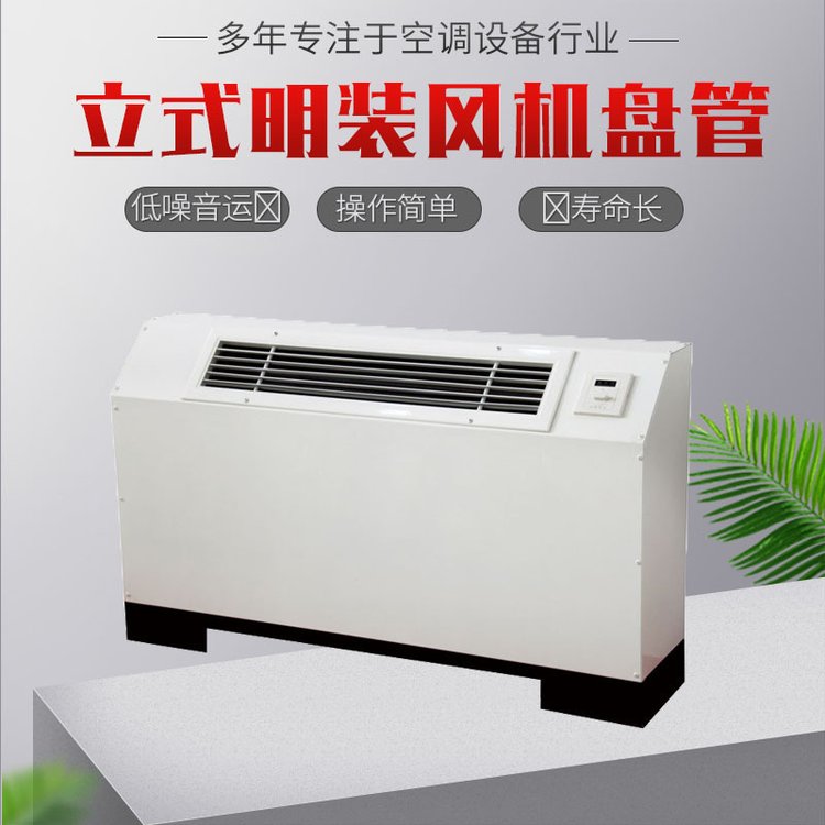 立式明裝風(fēng)機(jī)盤具有管效率高,能量足,風(fēng)量大,噪音低,安全可靠,壽命長(zhǎng)的優(yōu)點(diǎn),是明裝風(fēng)機(jī)盤管。風(fēng)量大,噪音低