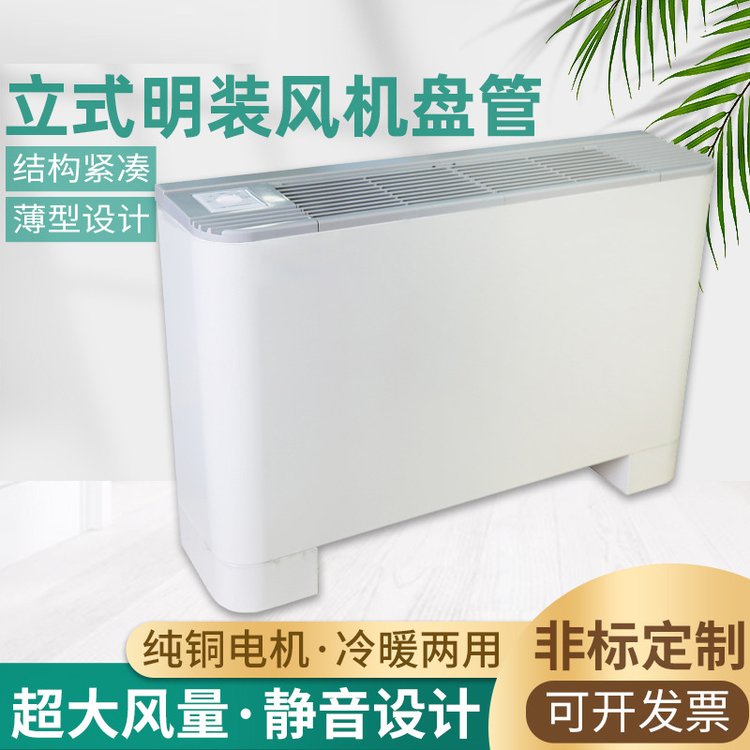 立式明裝風(fēng)機(jī)盤具有管效率高,能量足,風(fēng)量大,噪音低,安全可靠,壽命長(zhǎng)的優(yōu)點(diǎn),是明裝風(fēng)機(jī)盤管。